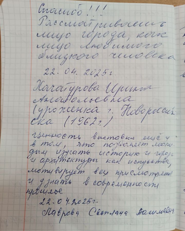 В рамках работы выставки проводим серию мастер-классов в выходные и праздничные дни, посвященных истории и архитектуре Новороссийска, и 80-летию Победы.